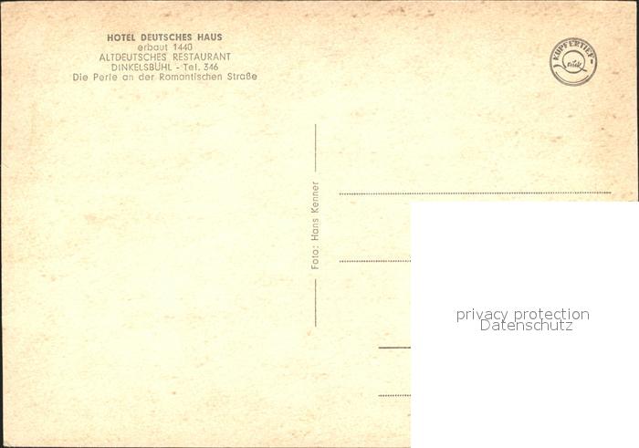 72305160 Dinkelsbuehl Hotel Deutsches Haus Restaurant postalisch nicht gelaufen Erhaltung siehe scans KatCode: 11110009571136