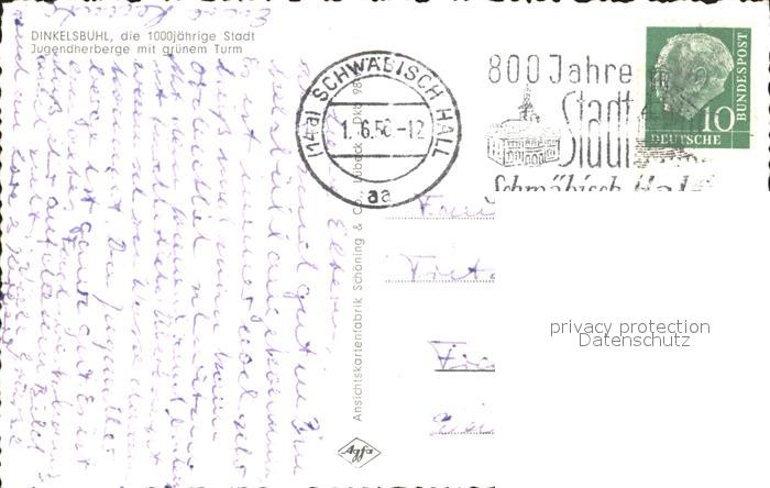 72258146 alte Postkarte Dinkelsbuehl Jugendherberge mit gruenem Turm postalisch gelaufen Erhaltung siehe scans KatCode: 11110009571136