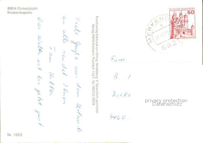 72420869 alte Postkarte Dinkelsbuehl Knabenkapelle postalisch gelaufen Erhaltung siehe scans KatCode: 11110009571136