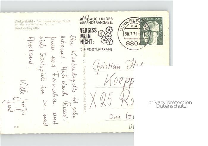 71975366 alte Postkarte Dinkelsbuehl Knabenkapelle postalisch gelaufen Erhaltung siehe scans KatCode: 11110009571136