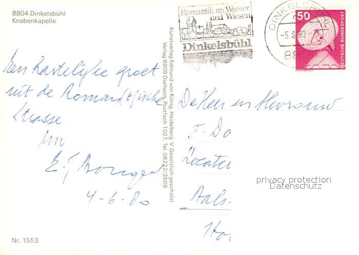 72929789 alte Postkarte Dinkelsbuehl Knabenkapelle postalisch gelaufen Erhaltung siehe scans [WerneD78] KatCode: 11110009571136