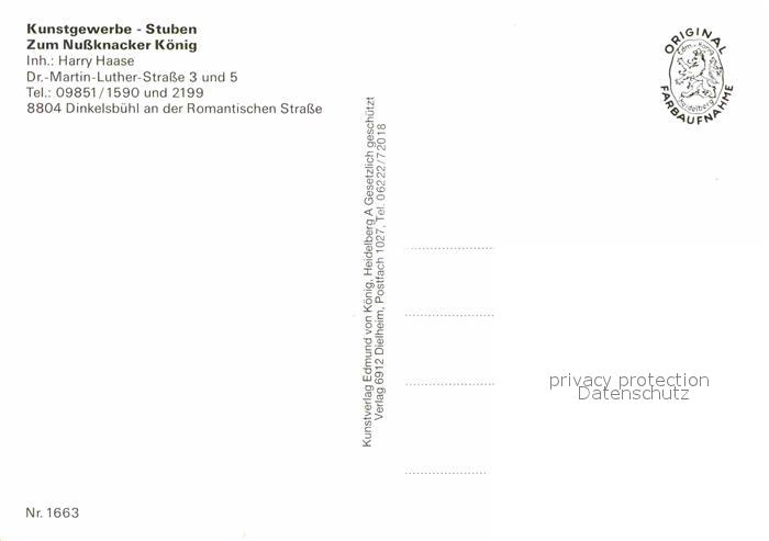 72766019 Dinkelsbuehl Kunstgewerbe Stuben Zum Nussknacker Koenig postalisch nicht gelaufen Erhaltung siehe scans [FriedD77] KatCode: 11110009571136