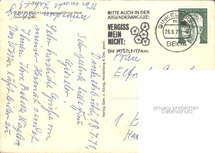 72473836 alte Postkarte Dinkelsbuehl Loewenbrunnen Stadttor postalisch gelaufen Erhaltung siehe scans KatCode: 11110009571136