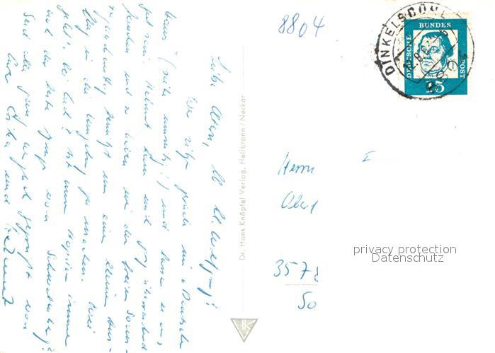72939002 alte Postkarte Dinkelsbuehl Marktplatz Weiher Wehrtuerme Deutsches Haus Jugendherberge Weinmarkt Kirche Innenansicht postalisch gelaufen Erhaltung siehe scans [FriedD77] KatCode: 11110009571136