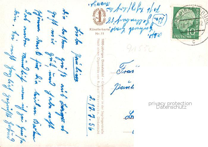 73869399 alte Postkarte Dinkelsbuehl Ortsmotiv Kuenstlerkarte postalisch gelaufen Erhaltung siehe scans [WerneD78] KatCode: 11110009571136
