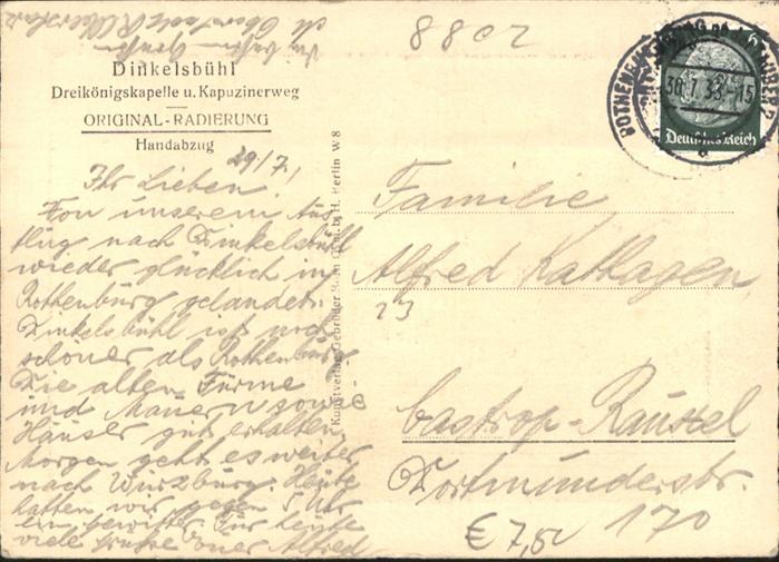 40921065 Dinkelsbuehl riginal Radierung Handabzug Dreikönigskapelle Kapuzinerweg x KatCode 11110009571136