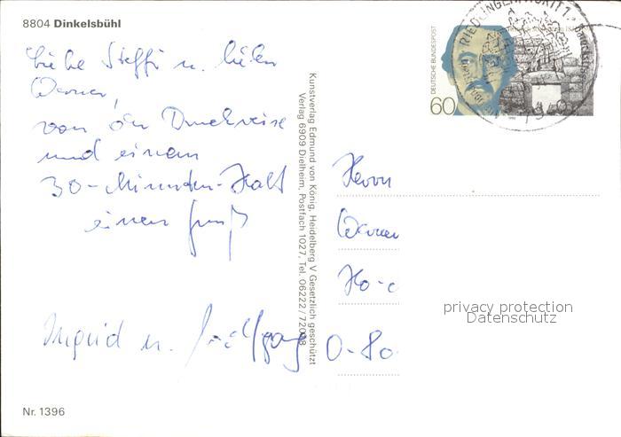 72356055 alte Postkarte Dinkelsbuehl Schwanenteich Turm Marktplatz Brunnen Altstadt Fachwerkhaeuser postalisch gelaufen Erhaltung siehe scans KatCode: 11110009571136