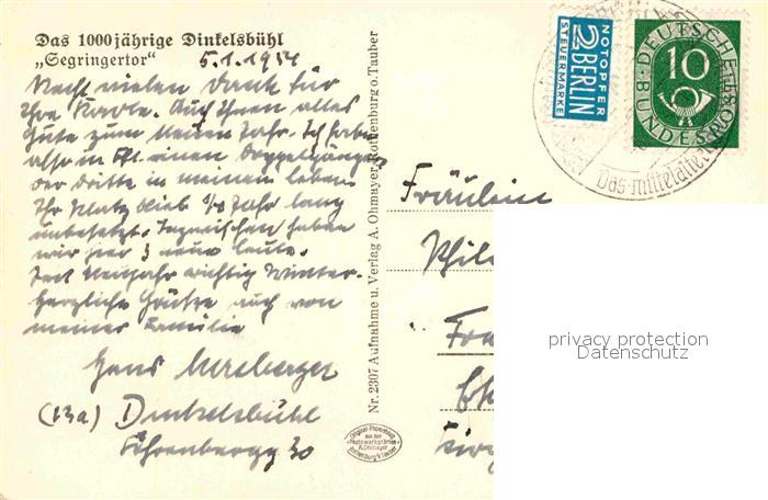 72749618 alte Postkarte Dinkelsbuehl Segringertor postalisch gelaufen Erhaltung siehe scans [AndreD76] KatCode: 11110009571136