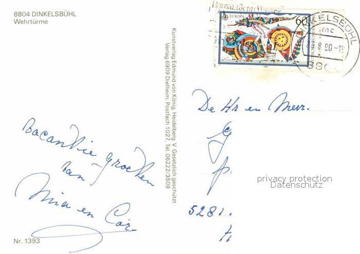 72872762 alte Postkarte Dinkelsbuehl Wehrtuerme postalisch gelaufen Erhaltung siehe scans [LiesaD40] KatCode: 11110009571136