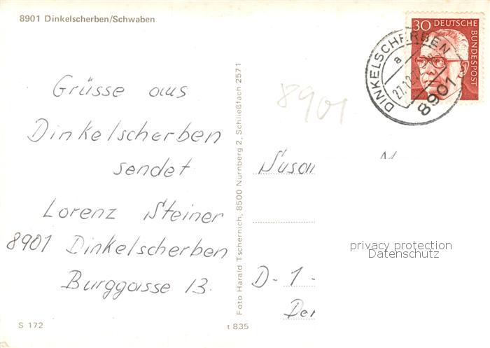 73873658 alte Postkarte Dinkelscherben Kirche Schule Strassenpartie postalisch gelaufen Erhaltung siehe scans [WerneD78] KatCode: 11110009772131