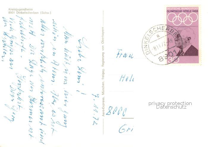73646133 alte Postkarte Dinkelscherben Kreisjugendheim Fliegeraufnahme Schulungsraum Hallenbad Zimmer postalisch gelaufen Erhaltung siehe scans [WerneD78] KatCode: 11110009772131
