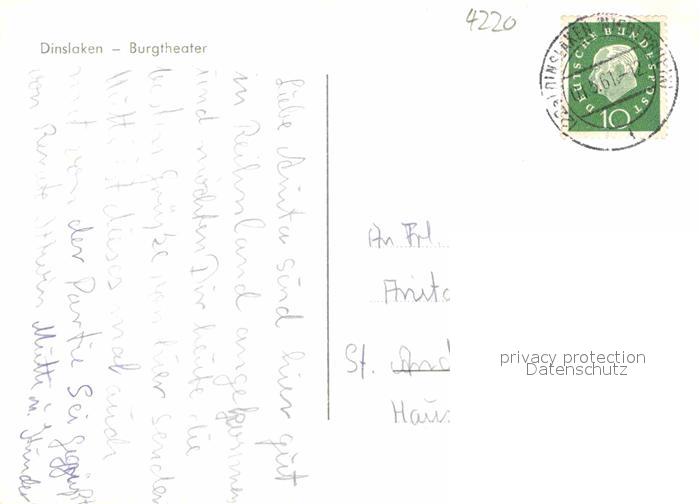 72919120 alte Postkarte Dinslaken Burgtheater postalisch gelaufen Erhaltung siehe scans [WerneD78] KatCode: 11110005170008