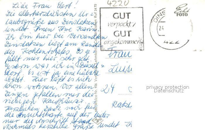 73754340 alte Postkarte Dinslaken HAus der Heimat Stadtsparkasse Freibad Hiesfeld postalisch gelaufen Erhaltung siehe scans [LiesaD40] KatCode: 11110005170008