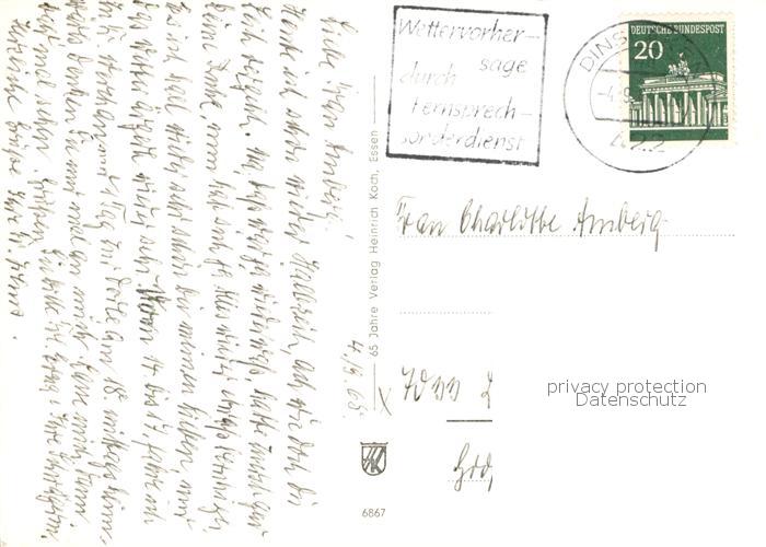 73871162 alte Postkarte Dinslaken Stadtsparkasse Neuestrasse Postamt Rittertor Kreihausanlagen Denkmal Neutor Maedchen Gymnasium Friedrich Ebert Strasse postalisch gelaufen Erhaltung siehe scans [WerneD78] KatCode: 11110005170008