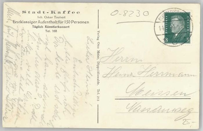 40257090 Dippoldiswalde Osterzgebirge Dippoldiswalde [Stempelabschlag] Stadt Cafe KatCode 11110014290080