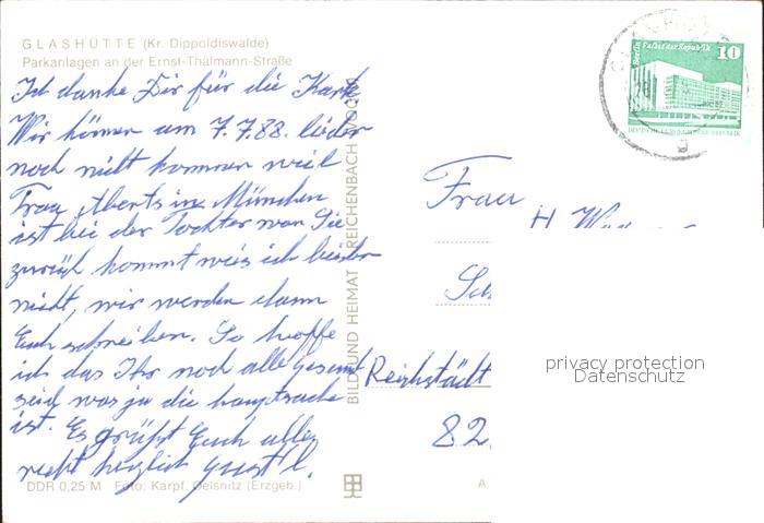 72362369 alte Postkarte Dippoldiswalde Osterzgebirge Parkanlagen an des Ernst-Th?lmann-Strasse postalisch gelaufen Erhaltung siehe scans KatCode: 11110014290080