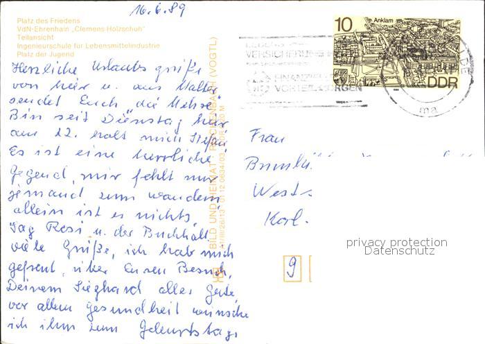 72324663 alte Postkarte Dippoldiswalde Osterzgebirge Platz des Friedens Ehrenheim Clemens Holzschuh Ingenieurschule Lebensmittelindustrie postalisch gelaufen Erhaltung siehe scans KatCode: 11110014290080