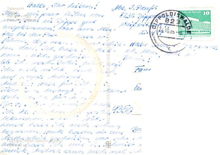 73914144 alte Postkarte Dippoldiswalde Osterzgebirge Schloss Karl Marx Platz Platz des Friedens postalisch gelaufen Erhaltung siehe scans [WerneD78] KatCode: 11110014290080
