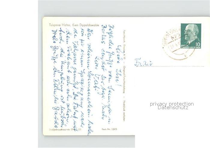 71973941 alte Postkarte Dippoldiswalde Osterzgebirge Talsperre Malter postalisch gelaufen KatCode: 11110014290080