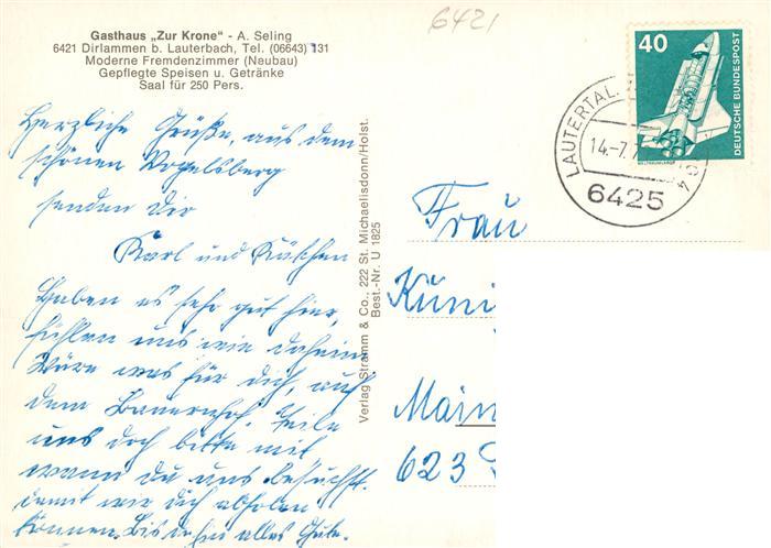 73872253 alte Postkarte Dirlammen Panorama Kirche Gasthaus zur Krone Schule postalisch gelaufen Erhaltung siehe scans [FriedD77] KatCode: 11110006535012
