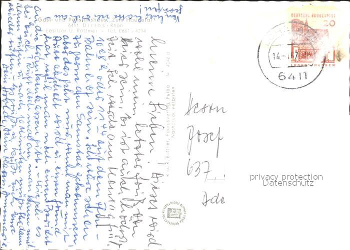72098764 alte Postkarte Dirlos Panorama Gast und Pensionshaus Zum Haunetal Gastraeume postalisch gelaufen Erhaltung siehe scans KatCode: 11110006631017