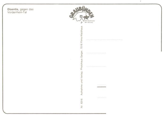 13944747 Disentis GR mit Vorderrhein Tal postalisch nicht gelaufen Erhaltung siehe scans [FriedD77] KatCode: 11470100355436