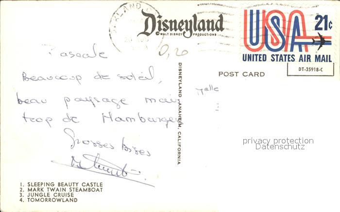 72402667 old postcard Disney World Castel Mark Twain Steamboat postalisch gelaufen Erhaltung siehe scans KatCode: 14140110000000