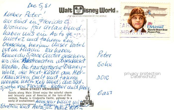 73051511 old postcard Disney World Main Street Memories postalisch gelaufen Erhaltung siehe scans [WerneD78] KatCode: 14140110000000