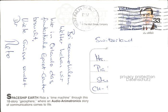72387035 old postcard Disney World Spaceship Earth Geosphere postalisch gelaufen Erhaltung siehe scans KatCode: 14140110000000
