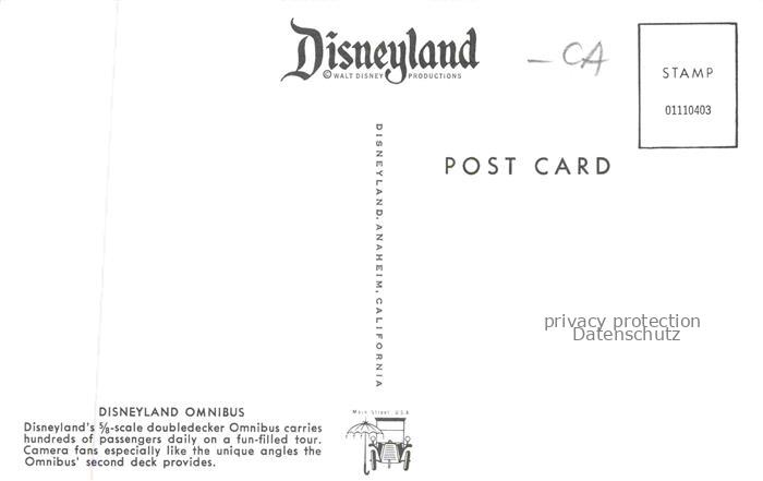 74063260 Disneyland Anaheim California USA Omnibus postalisch nicht gelaufen Erhaltung siehe scans [WerneD78] KatCode: 14140110000000