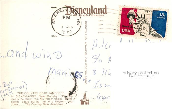 72908430 old postcard Disneyland California Country Bear Jamboree postalisch gelaufen Erhaltung siehe scans [PaolaD17] KatCode: 14140110000000