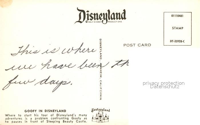 72944297 Disneyland California Goofy Sleeping Beauty Castle postalisch nicht gelaufen Erhaltung siehe scans [PaolaD17] KatCode: 14140110000000