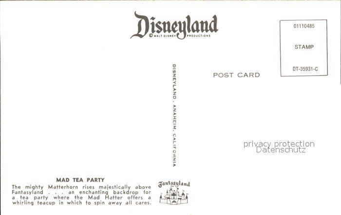11778054 Disneyland California Mad Tea Party Matterhorn postalisch nicht gelaufen Erhaltung siehe scans KatCode: 14140110000000
