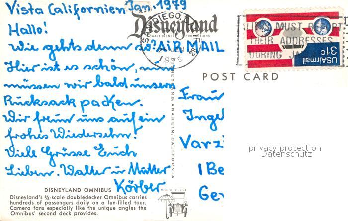 72908429 old postcard Disneyland California Omnibus postalisch gelaufen Erhaltung siehe scans [PaolaD17] KatCode: 14140110000000