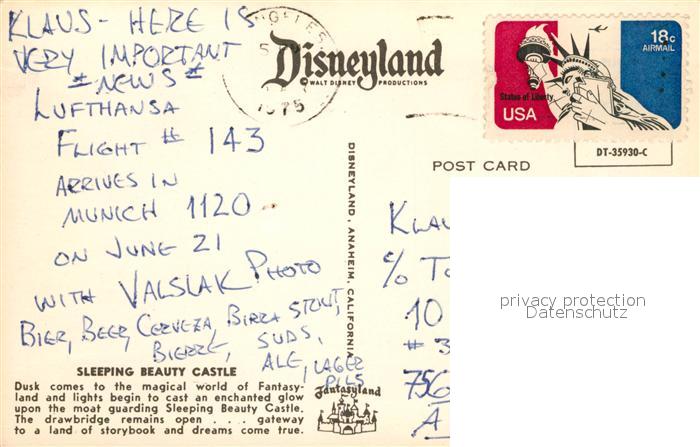 72908426 old postcard Disneyland California Sleeping Beauty Castle postalisch gelaufen Erhaltung siehe scans [PaolaD17] KatCode: 14140110000000