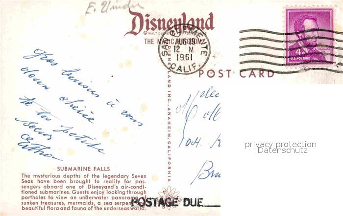 72878923 old postcard Disneyland California Submarine Falls Seven Seas postalisch gelaufen Erhaltung siehe scans [PaolaD17] KatCode: 14140110000000