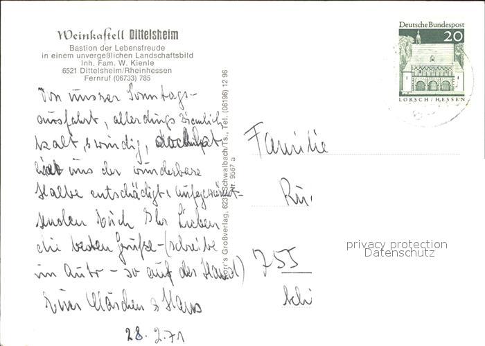 71994427 alte Postkarte Dittelsheim Weinkastell postalisch gelaufen Erhaltung siehe scans KatCode: 11110007331015