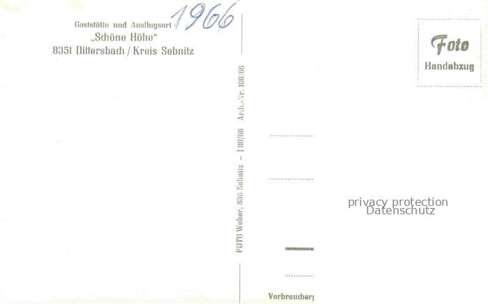 74098150 Dittersbach Duerrroehrsdorf-Dittersbach Sebnitz Sachsen Gaststaette Schoene Hoehe postalisch nicht gelaufen Erhaltung siehe scans [WerneD78] KatCode: 11110014287110