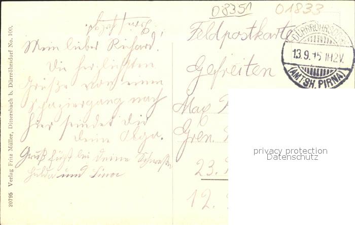42249597 alte Postkarte Dittersbach Duerrroehrsdorf Schoene Hoehe Teilansichten postalisch gelaufen Feldpost Erhaltung siehe scans KatCode: 11110014287110