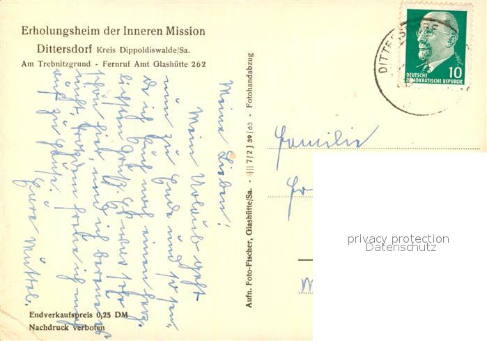 73135144 alte Postkarte Dittersdorf Glashuette Sachsen Erholungsheim der Inneren Mission postalisch gelaufen Erhaltung siehe scans [FriedD77] KatCode: 11110014290150
