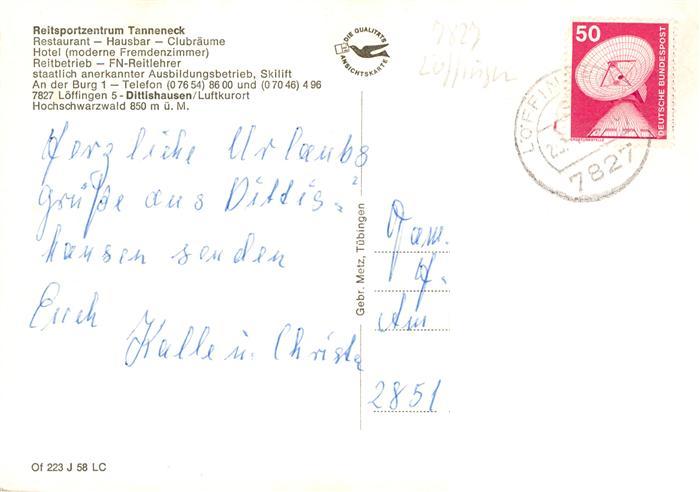 73932529 alte Postkarte Dittishausen Loeffingen Reitsportzentrum Tanneneck Reithalle Restaurant Springreiten postalisch gelaufen Erhaltung siehe scans [FriedD77] KatCode: 11110008315070