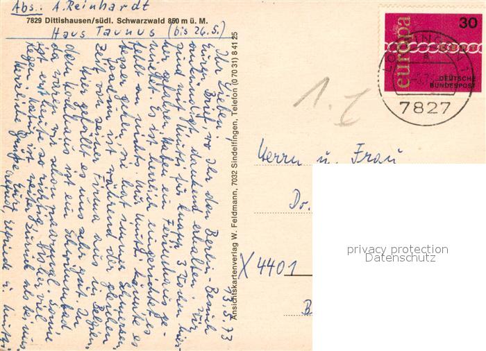 73647613 alte Postkarte Dittishausen Schwarzwald Fliegeraufnahme postalisch gelaufen Erhaltung siehe scans [FriedD77] KatCode: 11110008315070
