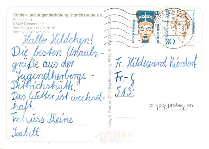 73648761 alte Postkarte Dittrichshuette Kinder und Jugenderholung Dittrichshuette Omnisport Gartenschach Kegelbahn Fitness Brunnen postalisch gelaufen Erhaltung siehe scans [WerneD78] KatCode: 11110016073108