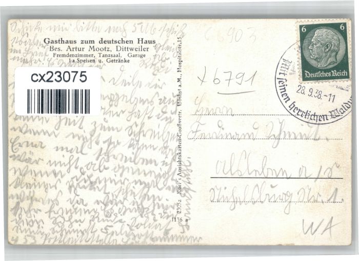 30751807 alte Postkarte Dittweiler Pfalz Gasthaus Artur Mootz postalisch gelaufen KatCode: 11110007336016