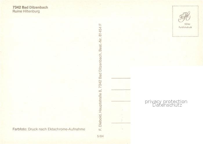 73233414 Ditzenbach Bad Ruine Hiltenburg postalisch nicht gelaufen Erhaltung siehe scans [KathaD81] KatCode: 11110008117006