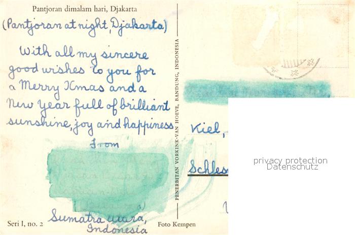 13598018 Djakarta Pantjoran dimalam hari postalisch gelaufen Erhaltung siehe scans [WerneD78] old postcard Wern Katcode 12180