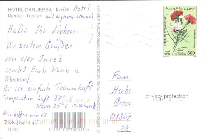 alte Postkarte Djerba Hotel Dar Djerba Bungalows Swimmingpool postalisch gelaufen