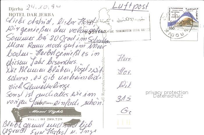 alte Postkarte Djerba Hotel Dar Jerba Swimmingpool postalisch gelaufen