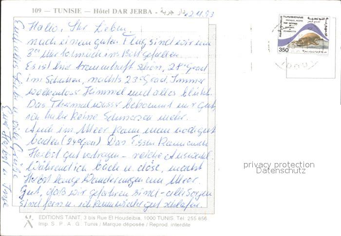 alte Postkarte Djerba Hotel Darjerba postalisch gelaufen Erhaltung siehe scans