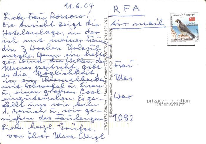 alte Postkarte Djerba Hotel Les Sirenes Fliegeraufnahme Swimmingpool postalisch gelaufen Erhaltung siehe scans